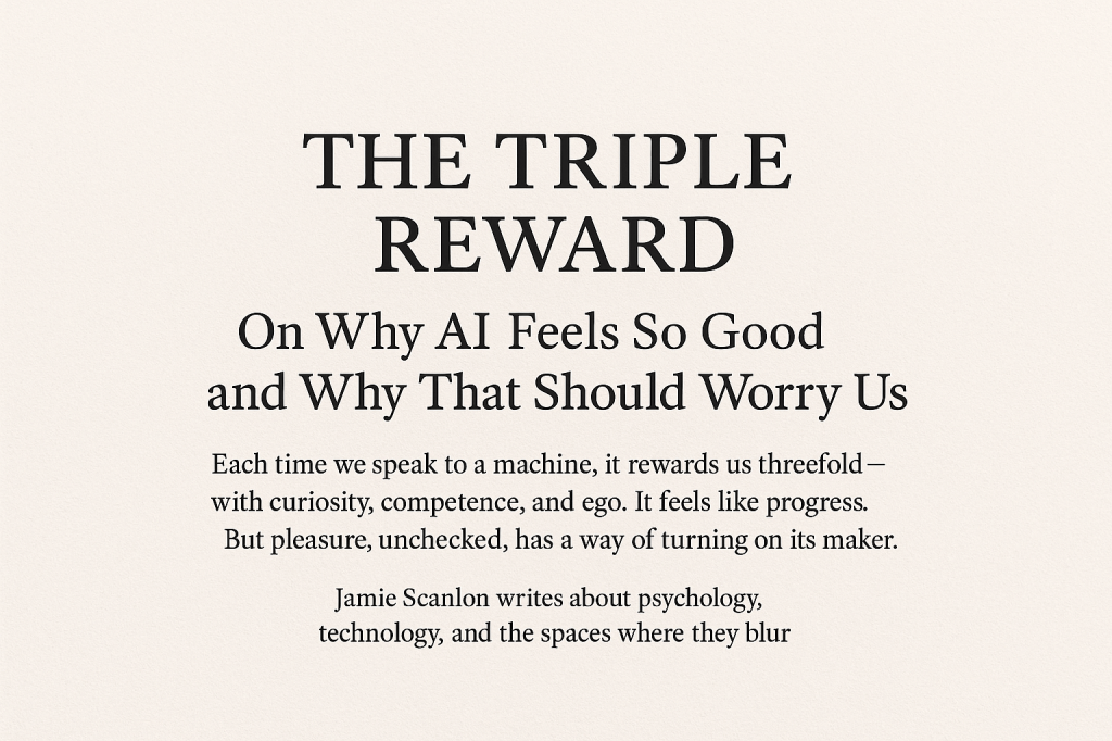 Each time we speak to a machine, it rewards us threefold — with curiosity, competence, and ego. It feels like progress. But pleasure, unchecked, has a way of turning on its maker.